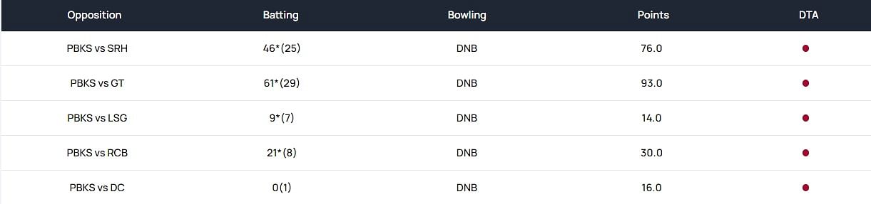 Shashank Singh has gone from ‘unknown’ to ‘undeniable’ to ‘inevitable’ in the space of a couple of weeks. After a monster showing against Gujarat - that many claimed would be hard to repeat - he produced another scintillating performance against Hyderabad. A 93-point game followed up with a 76-point performance. Remember, he bowls too. He hasn’t bowled this season yet, but could you imagine if he starts bowling as well? He’s going to be topping the Fantasy charts in no time.