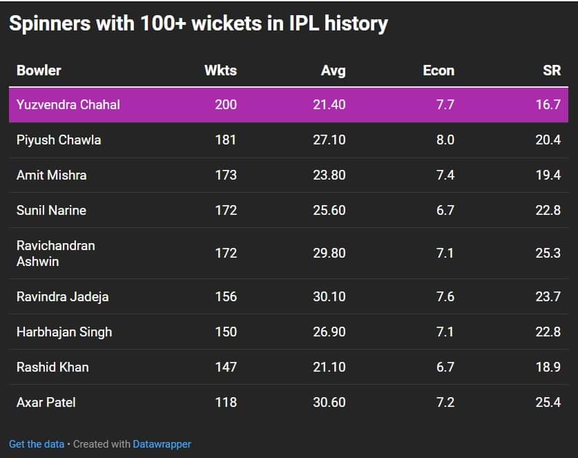 Among those with 100+ wickets in the IPL, the leg-spinner has the best strike rate, best wickets per game ratio and the second-best average.