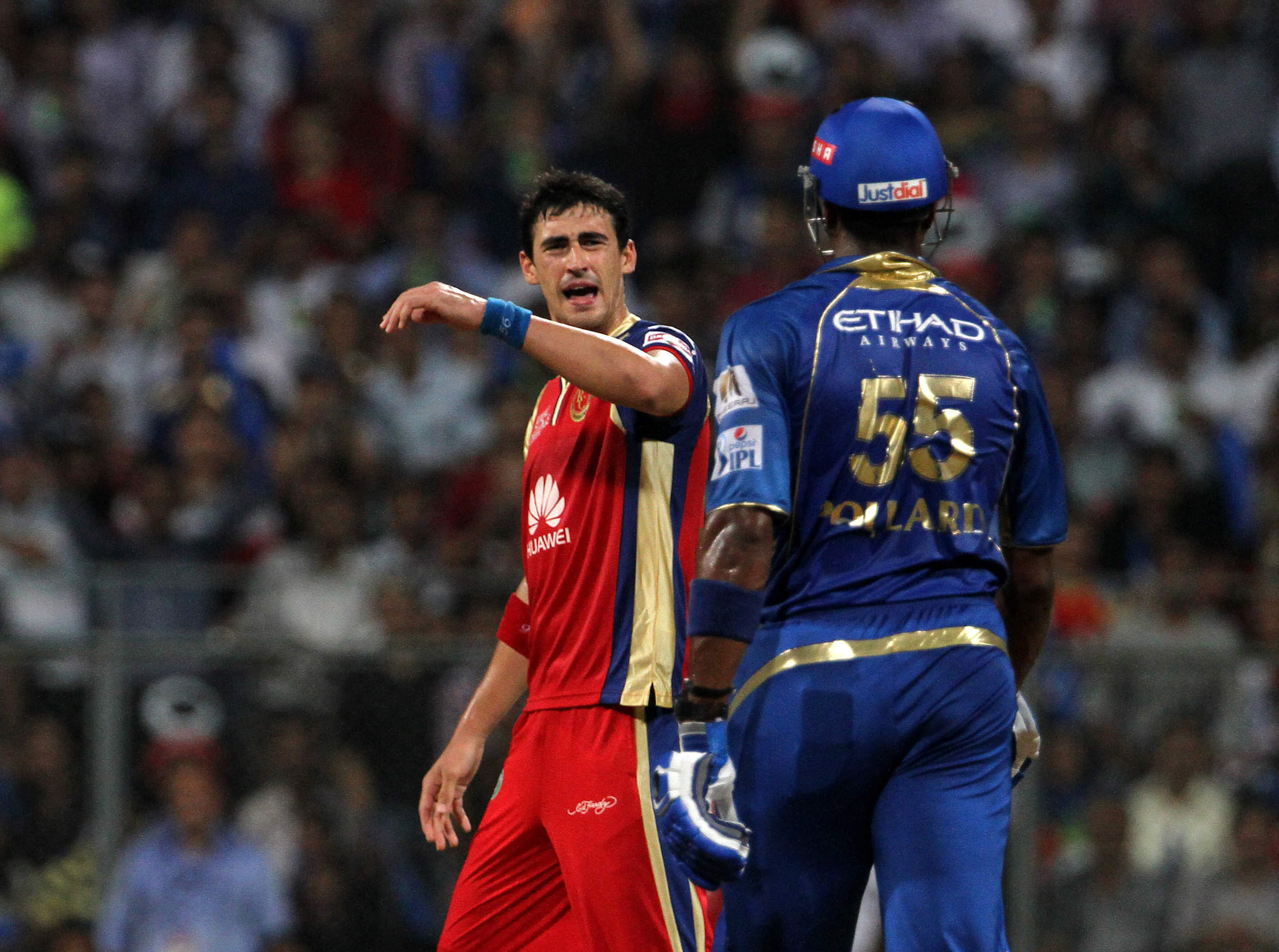 It was in the 17th over of the Mumbai Indians (MI) innings that Pollard, who was batting on 20 off 23 balls, tried to hook a bouncer from Royal Challengers Bengaluru (RCB)’s Starc. However, after he failed to do that, Starc said something to him, to which Pollard responded by asking the bowler to get back to his bowling run-up.
