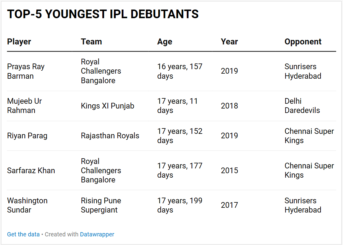 But before that happens, and if that happens, let’s take a look at the top five youngest IPL debutants.