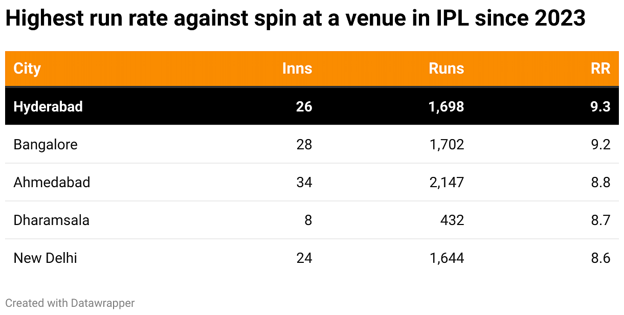 Spinners have had very little help here as they have sent to the stands regularly, with batters hammering them at a run rate of 9.3. It happens to be the most expensive the spinners have been at a venue across the last two IPL editions.