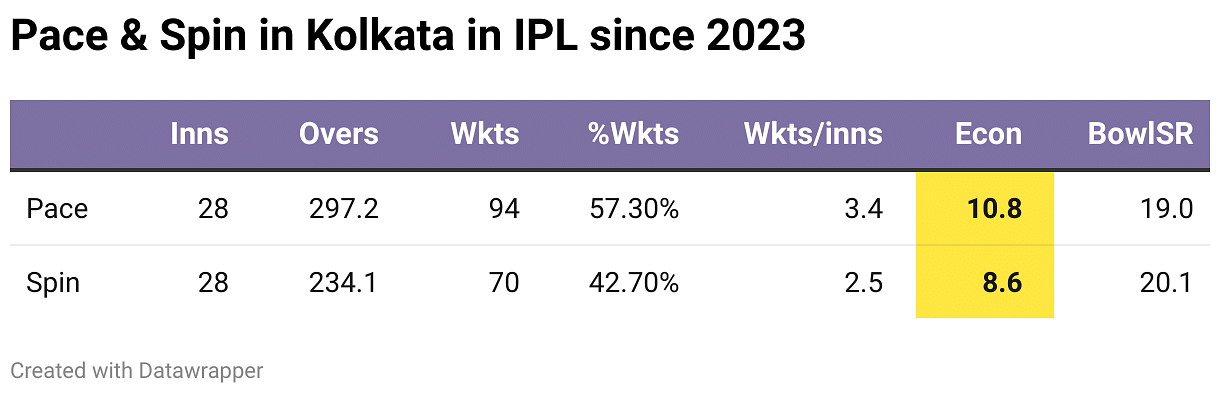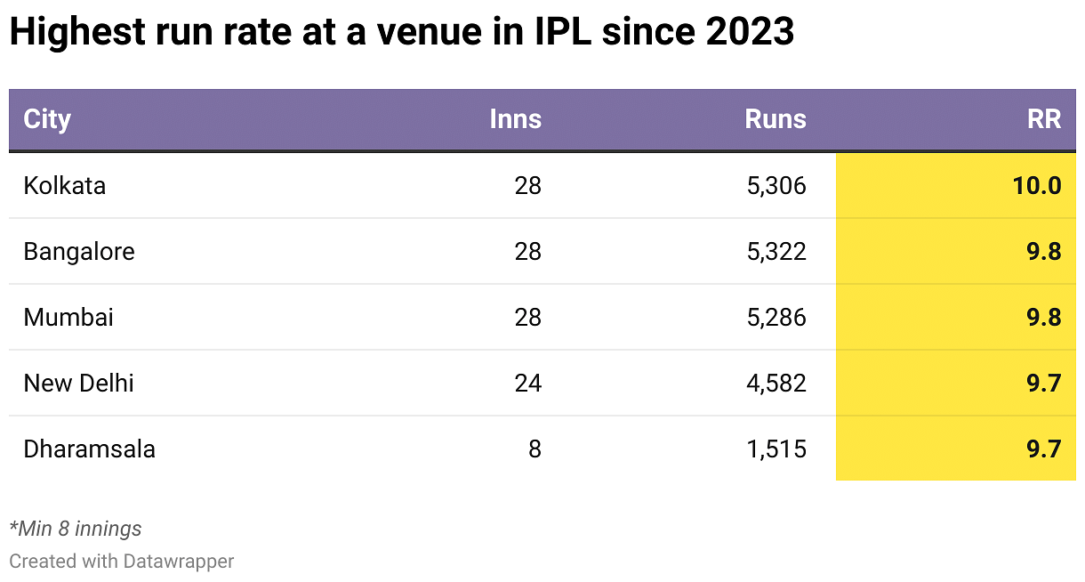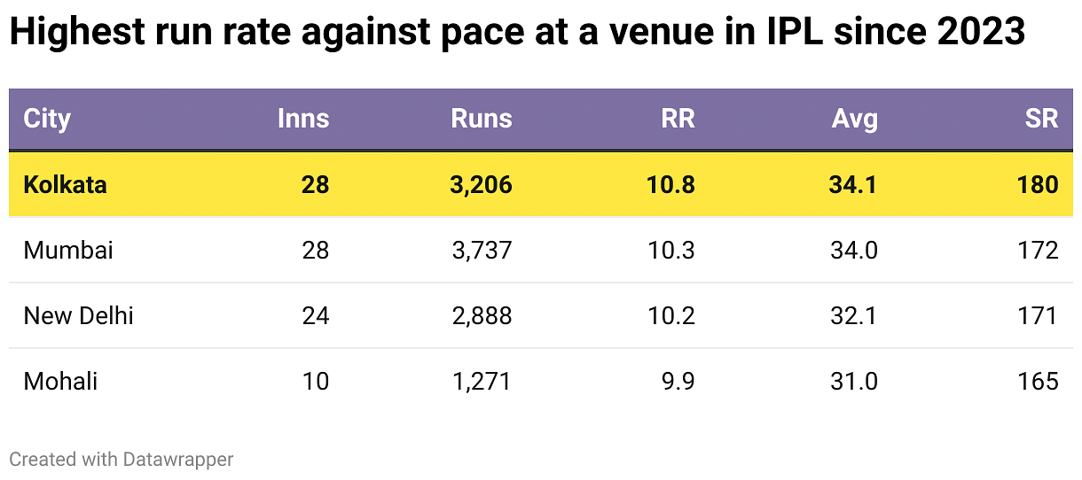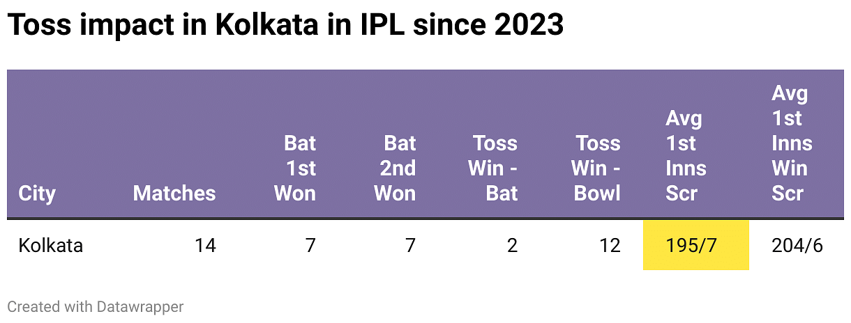 In the previous two seasons, Kolkata has been the batters' favourite ground as they have hammered bowlers left, right and centre. It has the highest run rate for a venue in IPL since 2023.