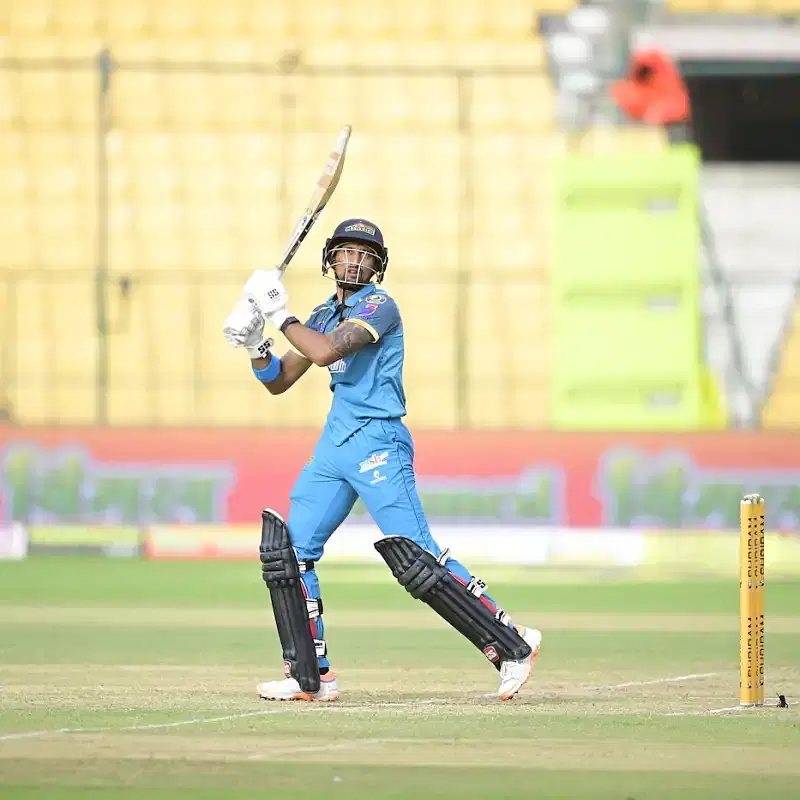 > Second highest run-scorer in Maharaja Trophy history. He scored 429 runs in 11 innings in the 2024 edition