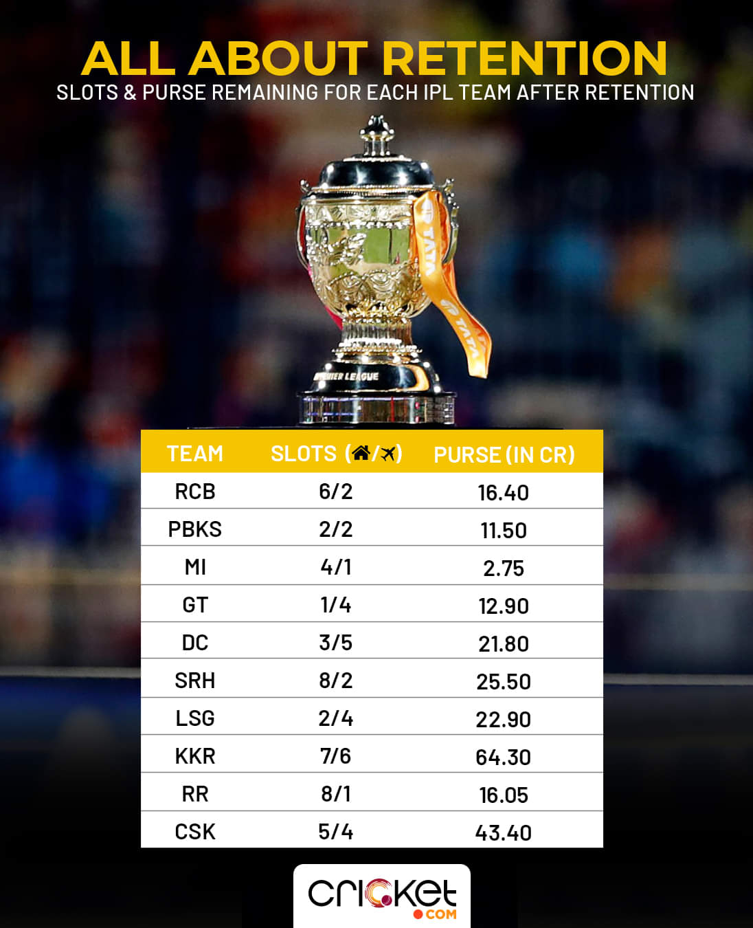 With big names like Ravindra Jadeja, Andre Russell, Sanju Samson, Josh Inglis and Shardul Thakur moving from their teams, it has been quite an interesting retention list. Let's look at how CSK, KKR, LSG, RR and PBKS are shaping up ahead of the auction.