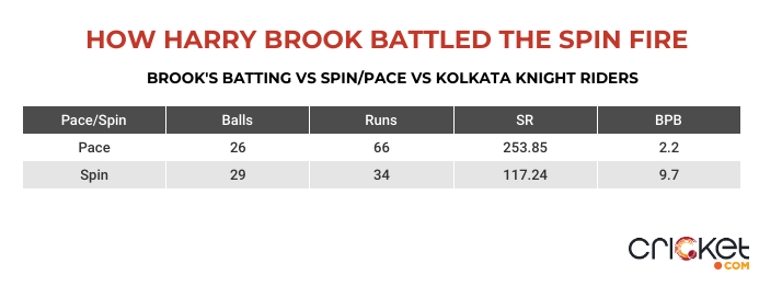 Brookās innings wasn't all perfect. It seldom is in a tournament like the IPL. If anything, Brookās struggle against spin was evident, and he himself admitted it during the mid-innings break. It was an apparent weakness that KKR had already pointed out but thatās where Brook was one step ahead. He barely took a risk against spin.