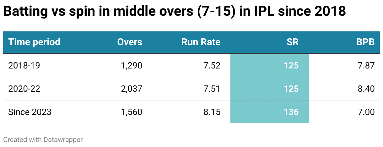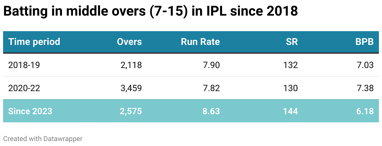 In the early seasons of the IPL, middle overs were considered as a phase where the batters would slow down the scoring rate, making sure to get through the phase without any trouble and attack in the slog overs (16-20).