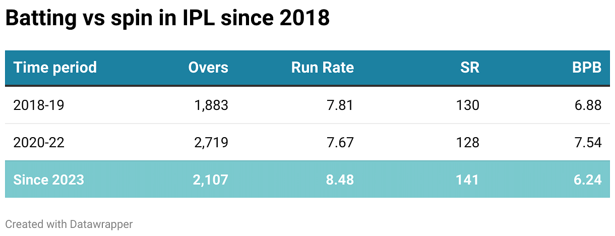 Looking at the numbers, the run rate against spin has gone up by almost one run, from 7.67 to 8.48.