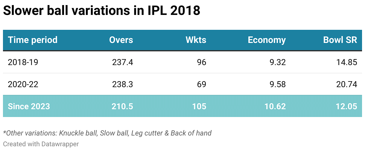 Along with the off cutters, the pacers now must have other ways to deceive the batters with slower ones. This has resulted in the increased use of knuckle ball, back of hand and other variations. Bowlers like Sandeep Sharma, Mohit Sharma and Nathan Ellis have aced these variations and have been given the role of bowling such deliveries in the slog overs.
