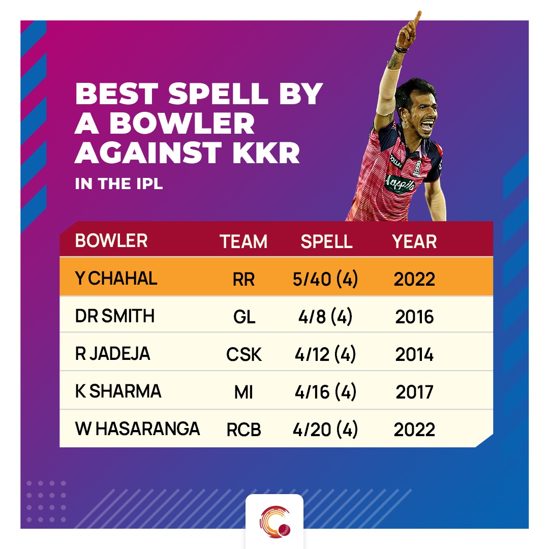 By picking up four wickets in his last over of the innings, Chahal registered his first ever five-wicket haul in the IPL. His previous best spell of 4/25 in the IPL came against Punjab Kings in 2016. In addition, he also became the first bowler in the IPL to bag a five-for against Kolkata. Until today, Dwayne Smith (4/8) for Gujarat Lions in 2016 held the record for the best spell against Kolkata.