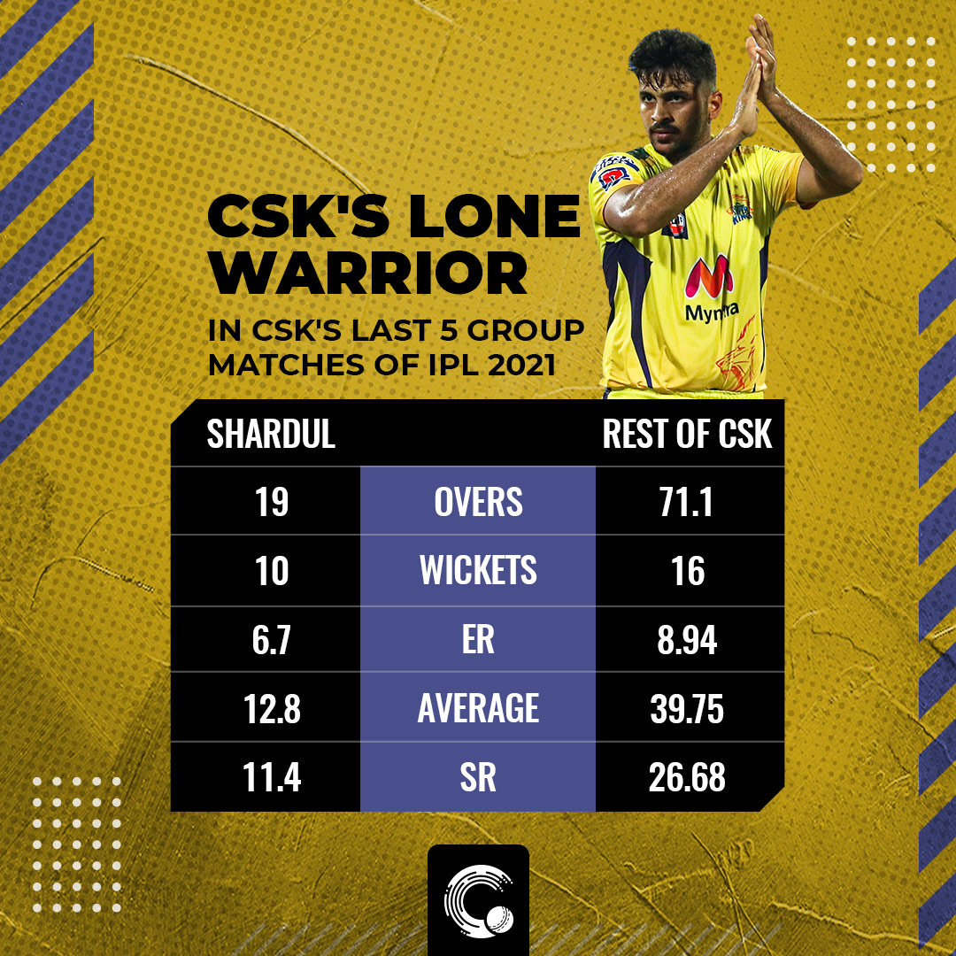 The bowling unit, meanwhile, has been erratic, inconsistent and impotent barring Shardul Thakur, who has proved to be CSK’s MVP with the ball game after game. While Shardul has taken important wickets, struck regularly and kept the batters on a leash, the rest of the CSK bowling, in the last five matches, has been a punching bag for the opposition batters. The disparity is borderline concerning.