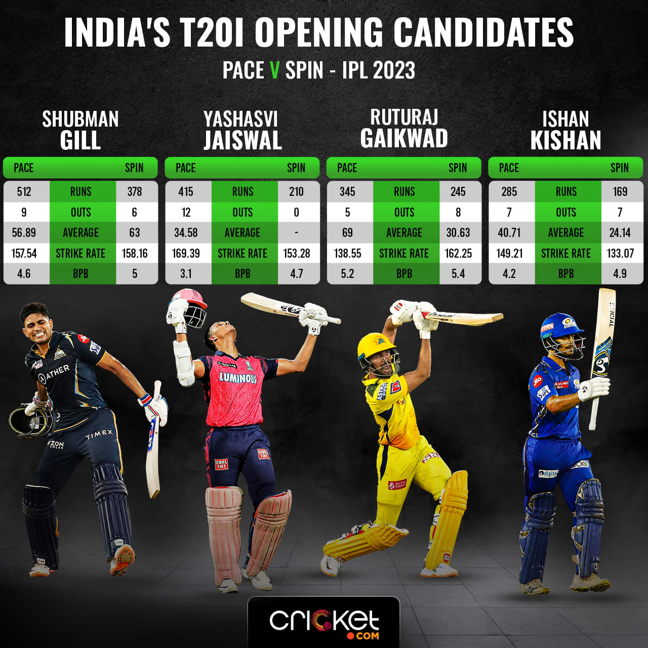 If you look at Jaiswal, who is also a left-hander - he smoked 73 runs off 38 deliveries at an SR of 192.1 against off-spin. What offspinners are to left-handed batters, left-arm spinners are to right-handers. Both Gaikwad (SR 161.3) and Gill (SR 139.5) had little trouble facing left-arm spin in this year’s IPL, which tells you about their well-rounded game against spin.