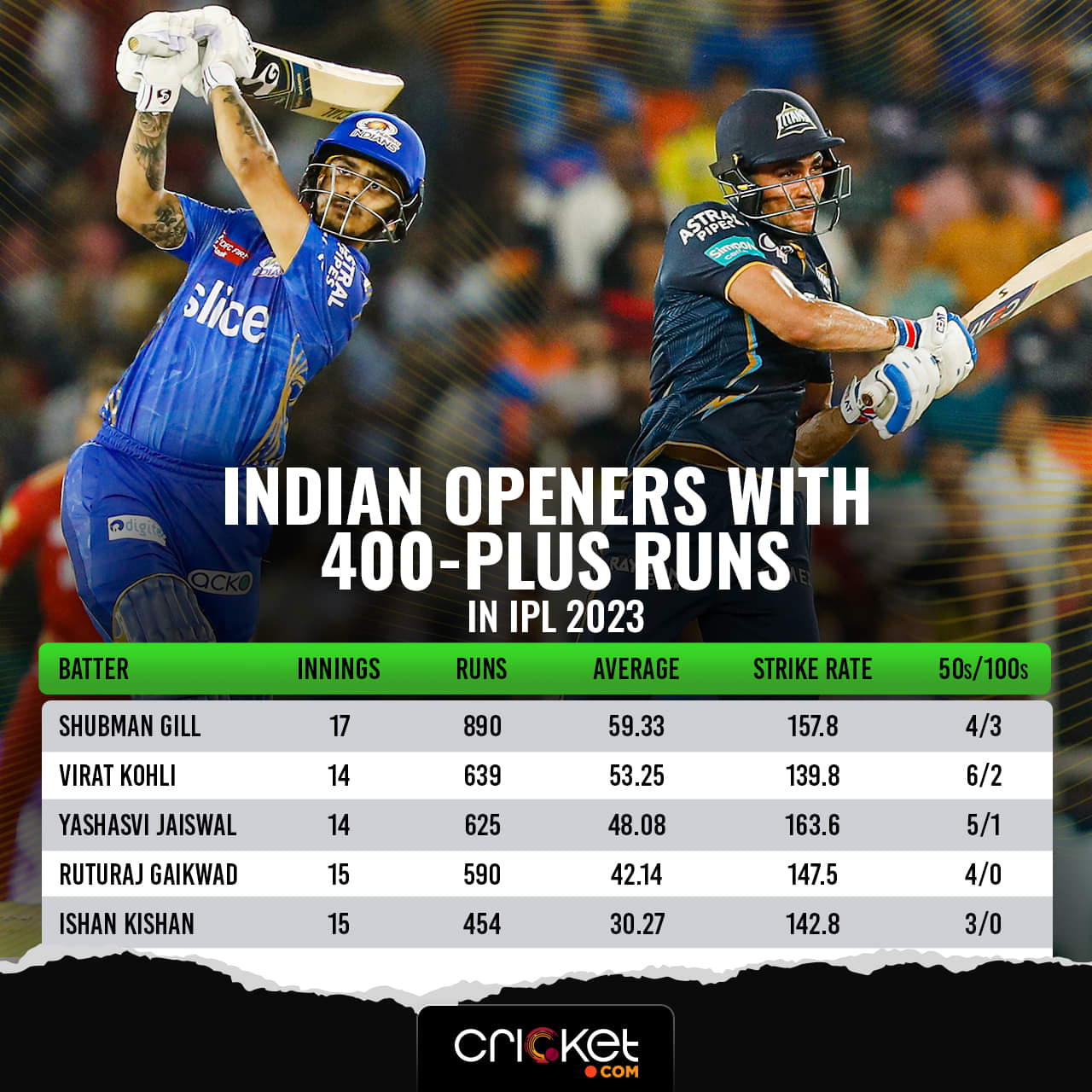 Gill was brilliant, too, with an average of 63 and a strike rate of 158.16. Gaikwad did have an average of 30.63 but his SR of 162.25 was the second-best amongst openers who scored at least 100 runs against spin this season, showing his prowess.