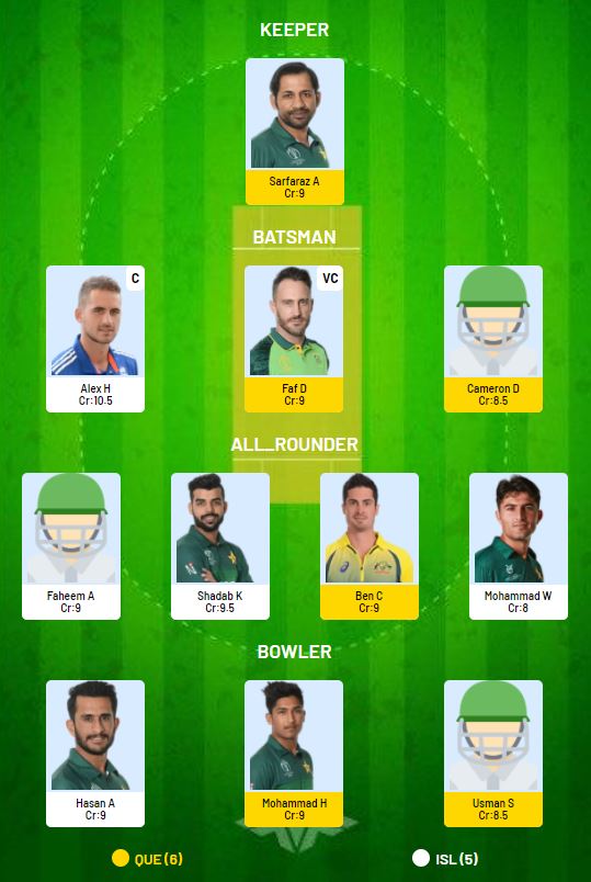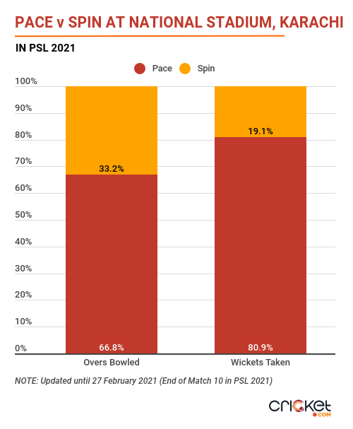 While spinners (8.3) might have a better economy rate than pacers (8.8) so far this season, it’s wickets that count in fantasy cricket and, on that front, pacers stand out. The faster bowlers (18.3) have a much better strike rate when compared to spinners (38.5) and they have taken more than 80% of the wickets in PSL 2021 so far. That is why we’ve gone with a pace-heavy bowling line-up.