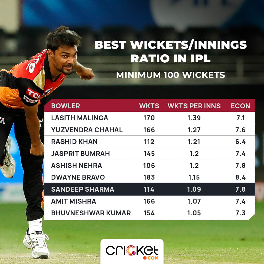 In T20s, maintaining control while taking wickets has been a insurmountable task. But Sandeep, despite being a prolific wicket-taker, has managed to keep a lid on the tab, putting himself in the same league with the likes of Lasith Malinga, Jasprit Bumrah, and Bhuvneshwar. He is one of the six pacers in IPL history to have taken 100+ wickets at an economy under 8.00 and only four pacers have a better wickets per innings than him.