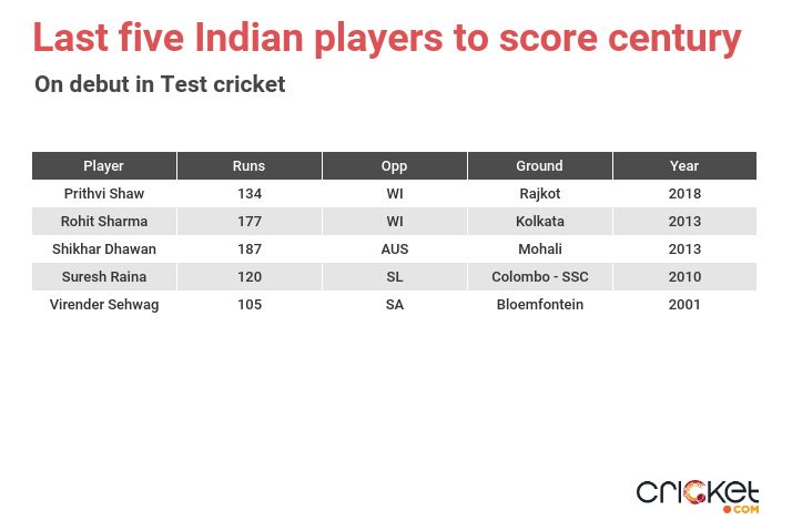 The 26-year old anchored the innings with a scintillating knock of an unbeaten 75 runs to power the team in a comfortable position at stumps. While he notched up a maiden half-century on debut, Shreyas can join an elite list of players to score a hundred on debut for India. In 2018, Prithvi Shaw scored a century on debut against the Windies at Rajkot, which was the last instance of a debutant notching up a three-figure score.