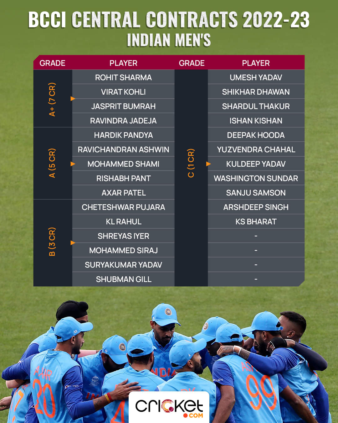 Then you have Ishan Kishan, Deepak Hooda, Kuldeep Yadav, Sanju Samson, Arshdeep Singh and KS Bharat being all added to Group C. Shikhar Dhawan, who hasn’t played for India since December 2022, is also part of Group C.