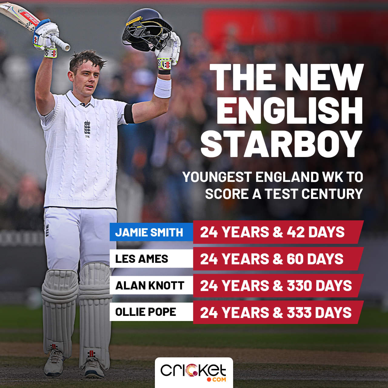 Cometh the first Test against Sri Lanka, Smith finished that unfulfilled job, scoring 111 in England’s first innings in Manchester. He is now the youngest England wicketkeeper to amass a Test hundred, surpassing Les Ames’ 94-year-old record.