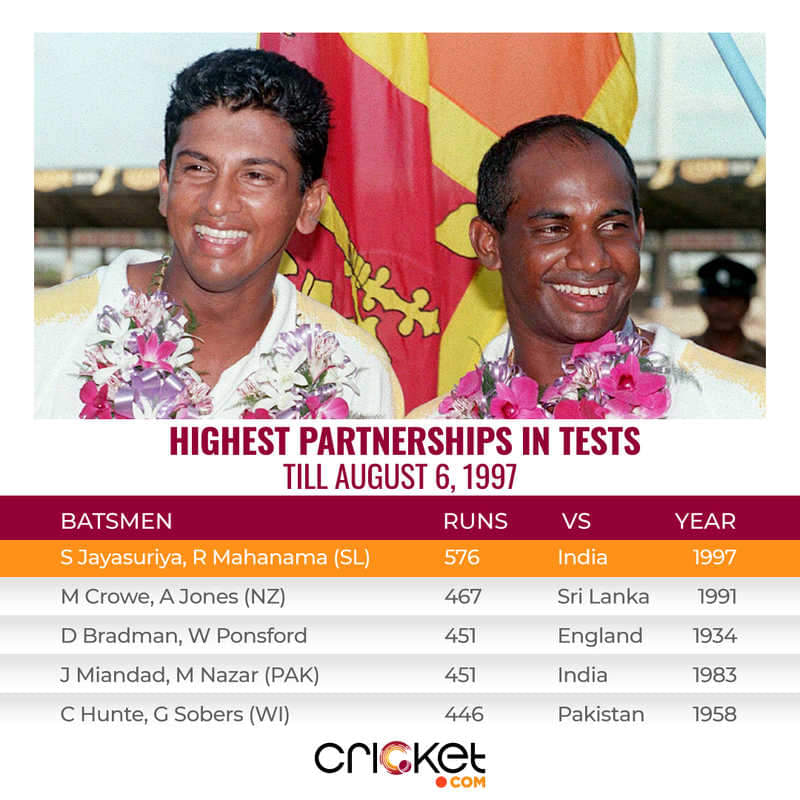 Jayawardene and Kumar Sangakkara broke the record set by Jayasuriya and Mahanama to put up a 624-run stand against South Africa in 2006, which to date is not just the highest Test partnership but also the highest stand in first-class cricket. In the same match, Jayawardene broke Jayasuriya’s record and scored 374 and still holds the record for the highest individual score for a Sri Lankan in Tests.