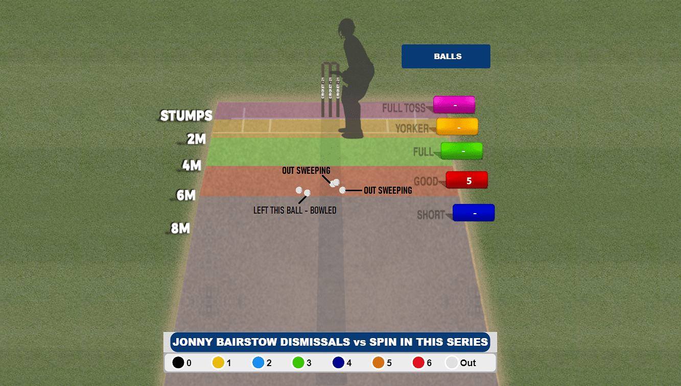 Bairstow has gotten out twice in the series sweeping, showing a pattern behind his dismissals. That’s not it. If you look into it, Bairstow has been dismissed five times against spinners in the tour and has an average of just 20.8.