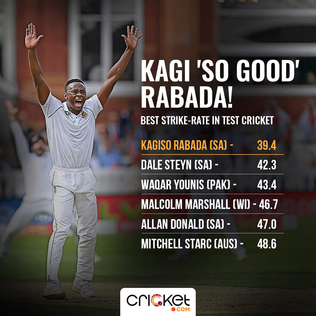 Interestingly, Rabada has the best strike rate for any bowler to have picked up 300 Test wickets. He strikes at 39.2, quicker than Steyn (42.3) and Younis (43.4). The South African pacer finished with figures of 3/26, taking his tally to 302 Test wickets, helping the Proteas bowl Bangladesh out for 106.