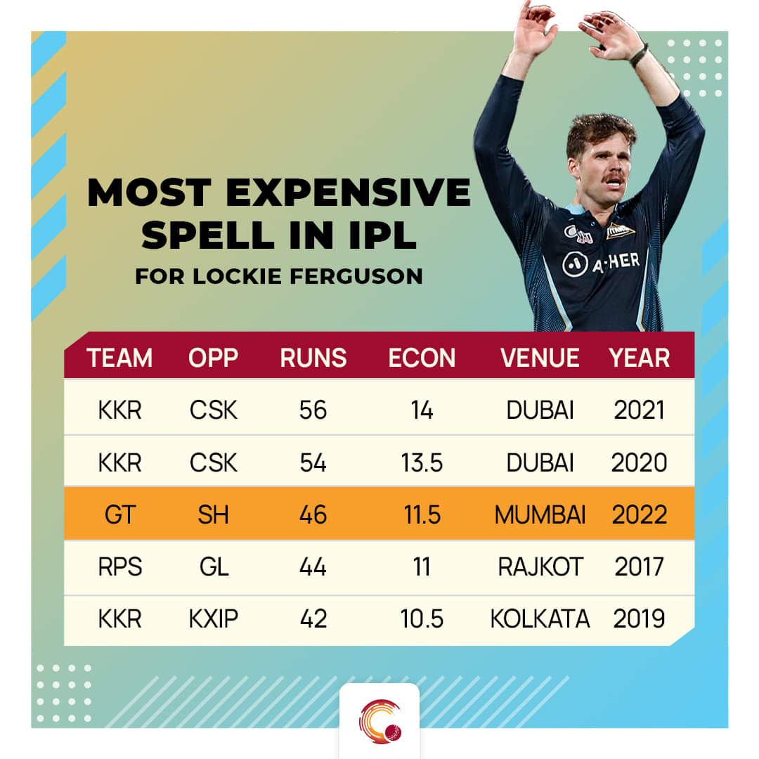 The 30-year old conceded 56 against the Super Kings at an economy rate of 14 at Dubai in 2021, which is the highest, followed by 54 against the same opposition in 2020.