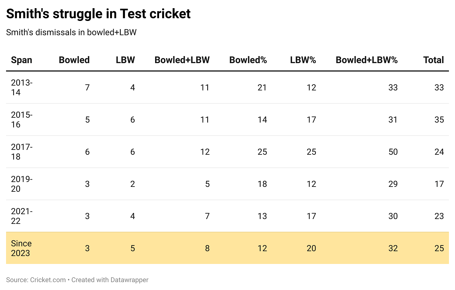 Visiting teams have had a similar plan for Steve Smith, trying to beat him on his shuffle and trap him right in front, but teams have rarely succeeded. Some have got it wrong, some wronger, and some terribly wrong that they have been forced to watch Smith as if something bad was happening in slow motion.