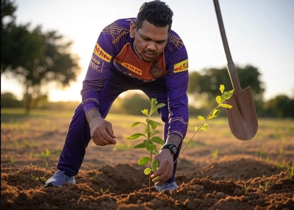 “61 dots bowled, 1098 trees planted,” KKR wrote on X, posting a picture of their players planting samplings.
