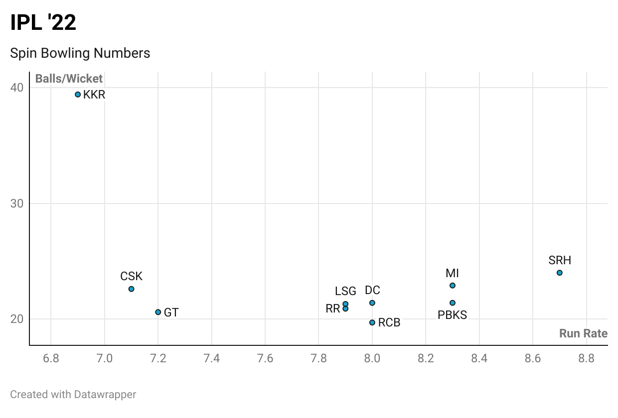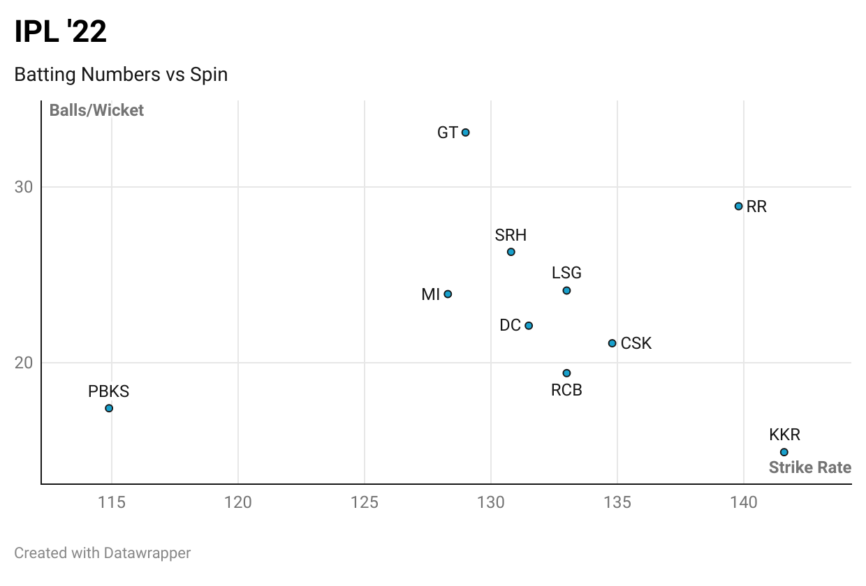 Anything that had to do with pace, and KKR found themselves wanting. To set some more context, KKR had the poorest run rate vs pace despite Pat Cummins and Andre Russell scoring 140 runs in 61 balls between them.