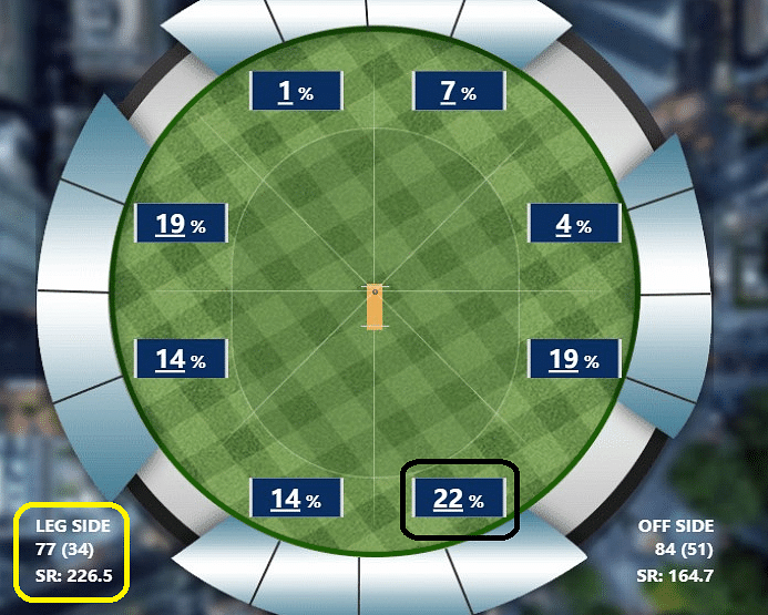 He has made the best use of the fielding restrictions, with over one-fifth of his runs coming from the long-off region.