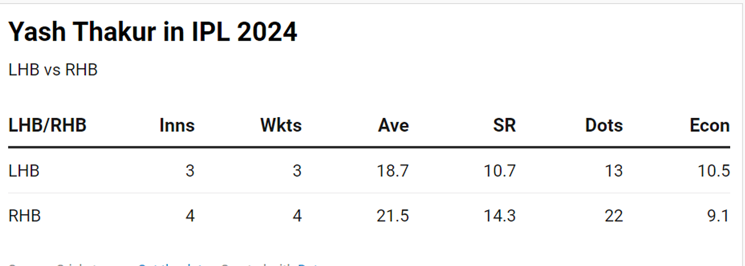 Yash Thakur has stepped up to the plate in Mayank Yadav’s absence, having picked up six wickets in the last two matches, including a five-wicket haul against Gujarat Titans (GT) in Lucknow. His performance has further enhanced LSG as one of the best pace-bowling units this season, with an economy rate of 9.1 (third best) and strike rate of 13.9 (Joint best).