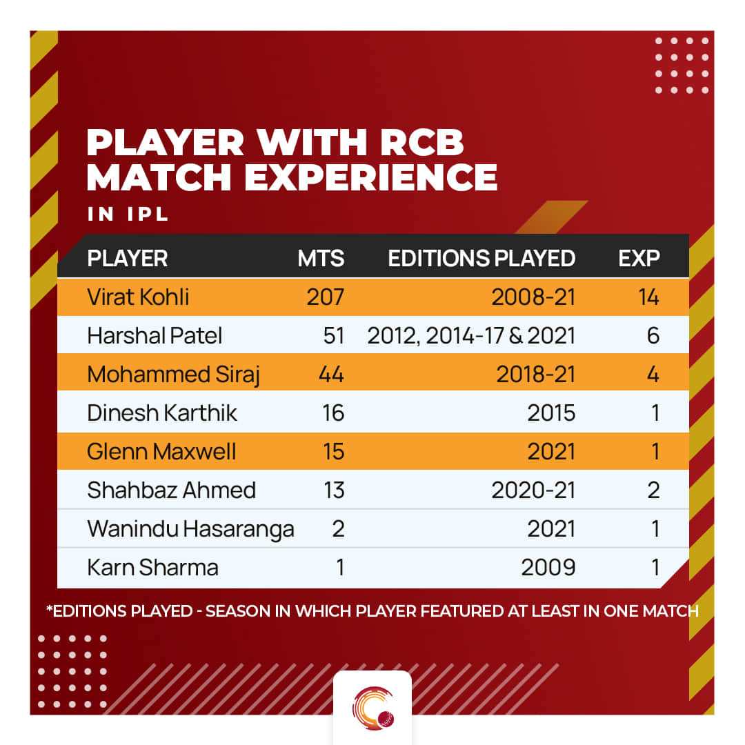 In the auction, they brought back Harshal Patel, the purple cap holder last year. Wanindu Hasaranga and Shahbaz Ahmed were also among the buybacks. Dinesh Karthik who represented Bangalore in 2015, will be making a comeback to the franchise this year.