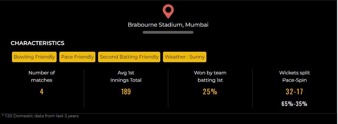 Both sides have their full-strength side available for the encounter but given this is an afternoon game, the impact of the spinners might be on the higher side. The average runs per wicket at the Brabourne Stadium in Mumbai is 24.5 whereas the average batting first score here has been 163. Teams score at an average of 52.4 runs in the powerplay whereas the corresponding numbers for the death overs are 50.4. That gives an impression that this is a batting-friendly venue and batters can have their share of fun under the scorching heat of Mumbai.