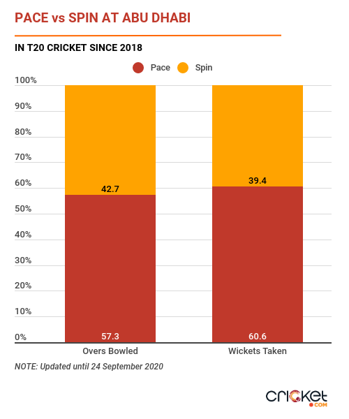 As far as the share in wickets is concerned, pacers have picked up nearly 61% of the wickets since 2018 in Abu Dhabi and have been more successful in every aspect other than the economy rate.