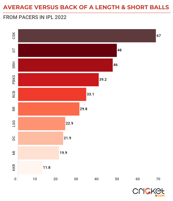 They also have the lowest average against short-pitched stuff, losing 25 wickets when the seamers hit the deck. It is 12 more than any other side.