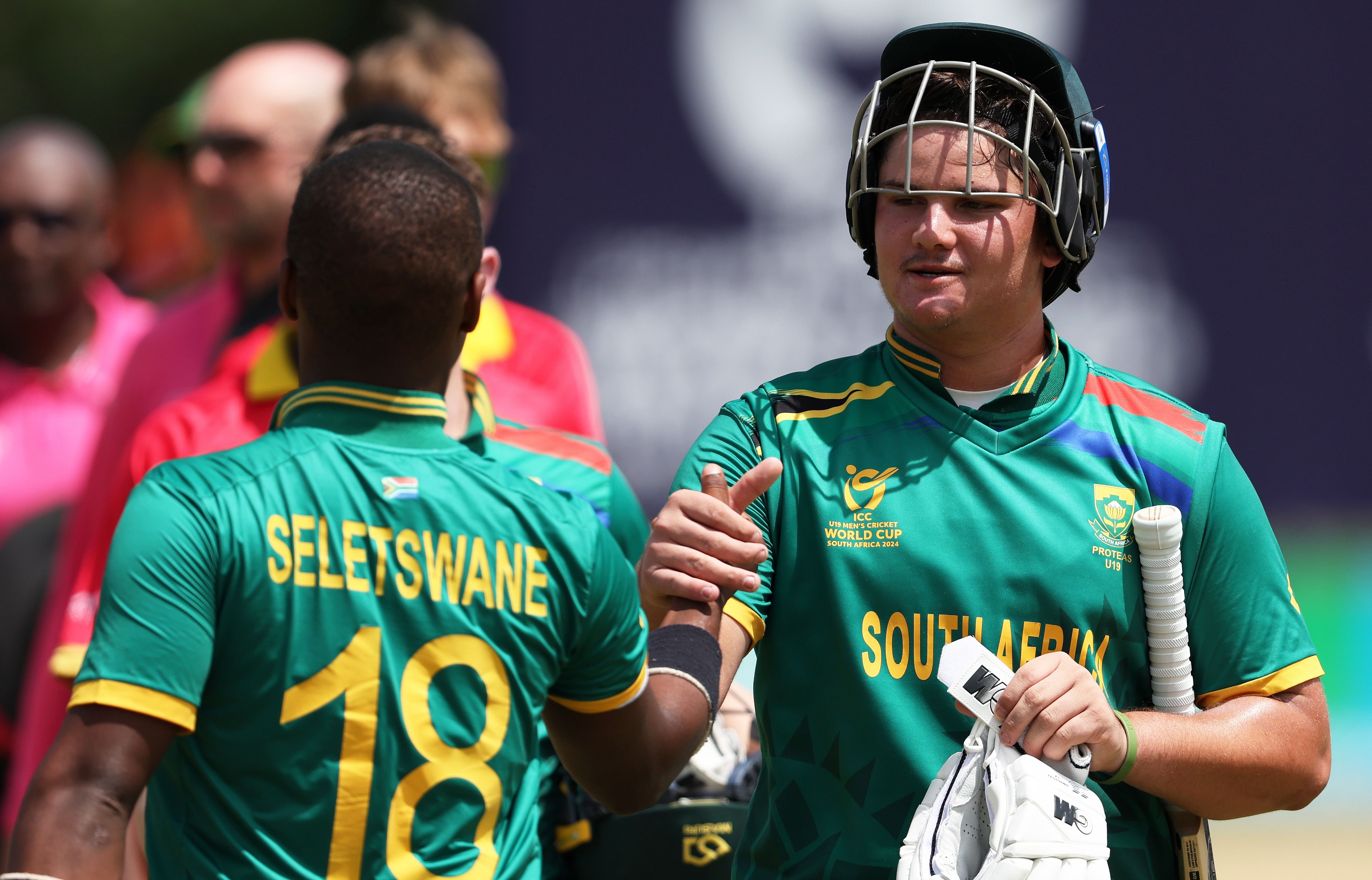 Today, his 76 off 102 came against a bowling attack that hasn’t allowed batters to score against them after the field restrictions are lifted. No team has crossed 200 against India in this U19 World Cup. But his 76 and Seltswane’s 65 have allowed the Proteas to post a very competitive 244/7 against India in the knockouts, who are yet to bat second in this tournament.