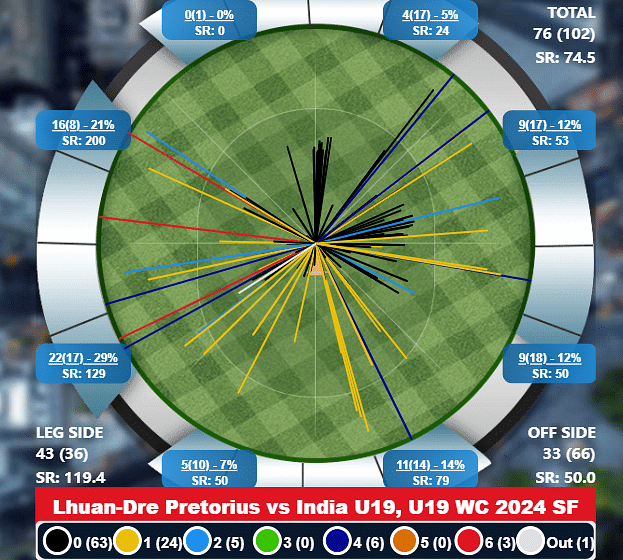 In fact, between overs 20 to 24, only three runs were scored. Indian keeper Avanish Aravelly counted every dot ball loudly in English, ensuring Pretorious knew exactly how many consecutive dot balls had been bowled.