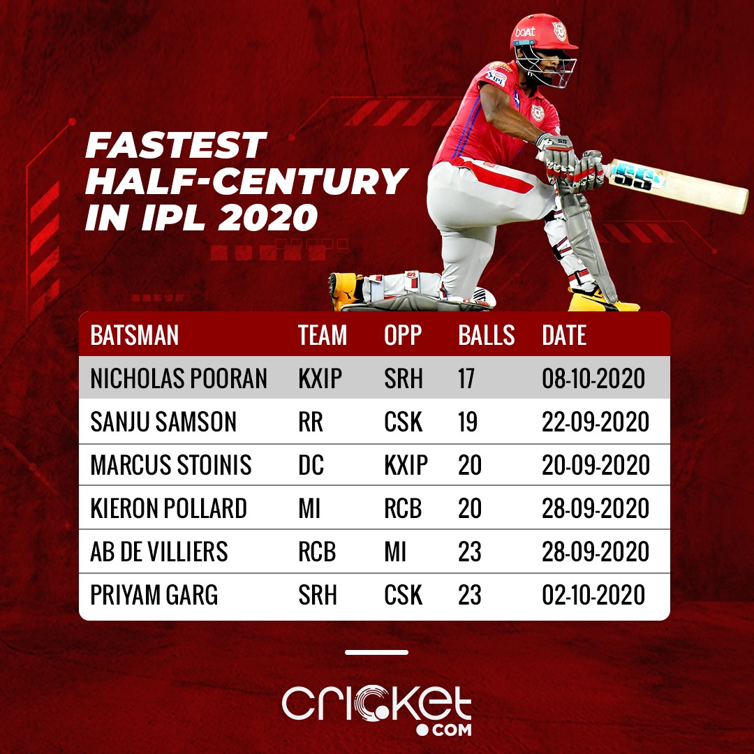 Rahul’s departure could be the sucker punch to KXIP’s chase but Pooran soon instilled life into their innings cracking four gigantic sixes in the ninth over of the innings. Pulling the required run-rate back into the affordable territory, he destroyed Abdul Samad’s leg-spin for 28 runs in the over and completed a 17-ball fifty, the quickest of the season.