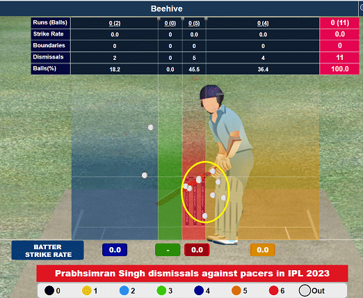 Pacers, on the other hand, have troubled him too much by getting the better of him 11 times. He has been dismissed seven times to incoming deliveries bowled by pacers and nine times against deliveries that bowled towards the stump line or bowled into his body line by pacers. That would make Rajasthan pacers, especially Sandeep Sharma and Trent Boult, interested.