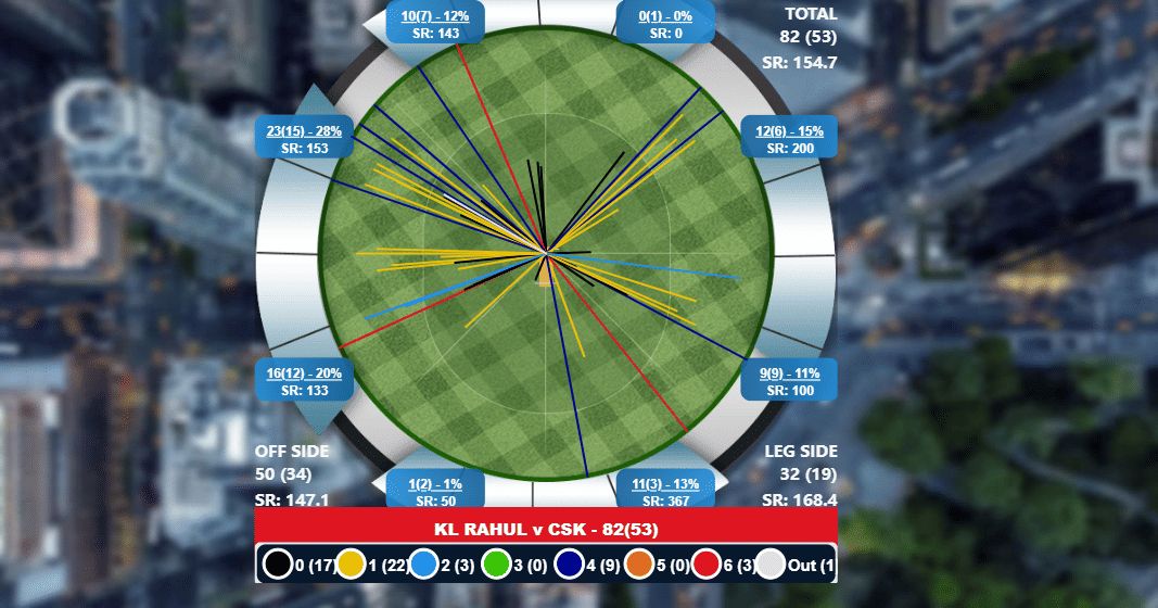 In a typical KL Rahul knock, he scored most of his runs behind square on the off-side - 40%.