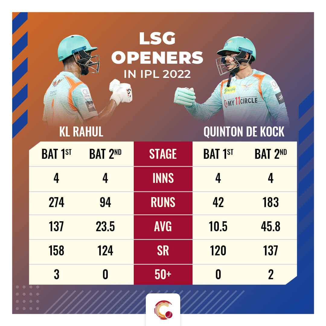 However, Rahul has shown weakness while chasing. All of his three 50-plus scores this season have come when LSG have batted first. However, while chasing, his average and strike-rate dips drastically.