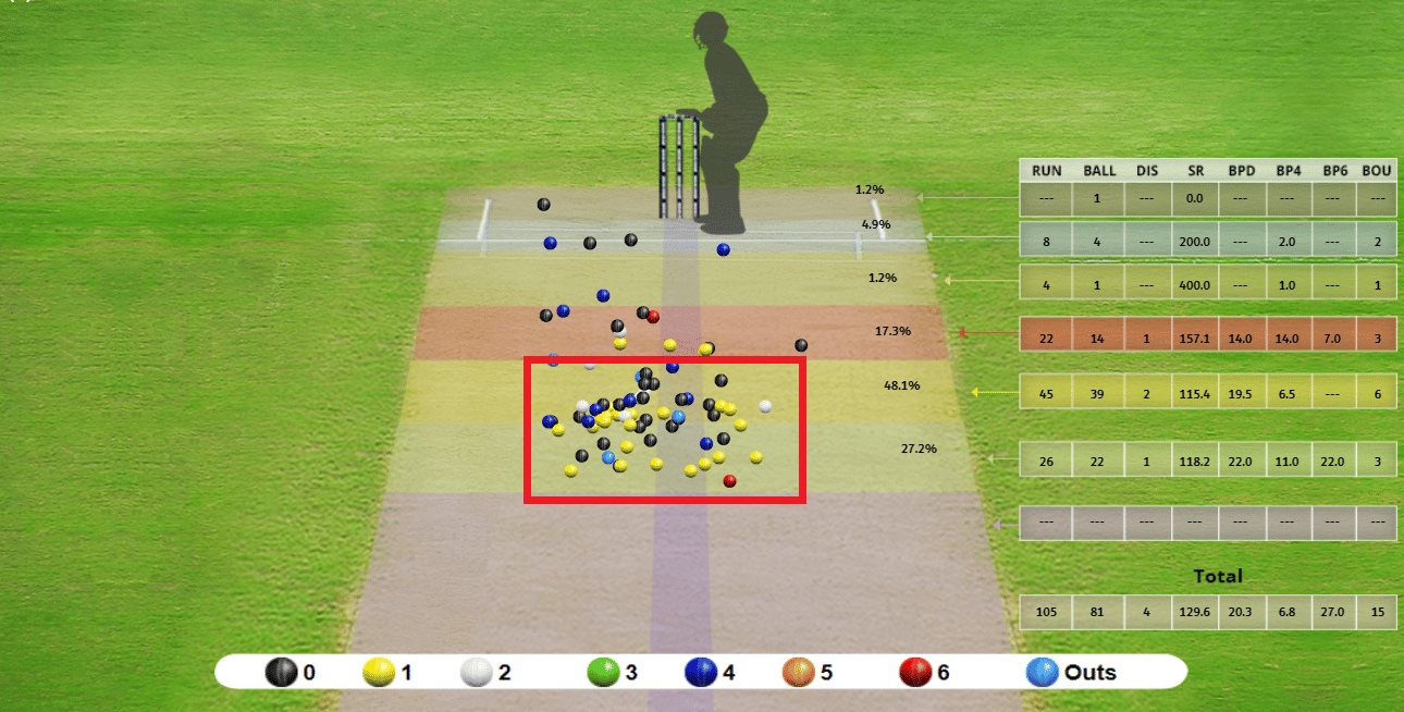This season though the story has been different. Less than 49% of his deliveries have landed in the good length area, but what has hurt him more is full deliveries (2-4m) – an area where he has bowled 23.7% of his deliveries and has been taken for 11 an over.