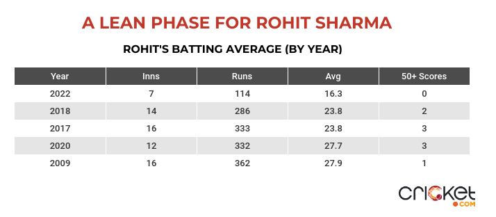 Across seven games, the Indian skipper only has piled 114 runs, averaging a meagre 16.29, striking at an ordinary strike-rate of 126.7. Rohit’s steady decline has put enough pressure on the rest of the batting order.