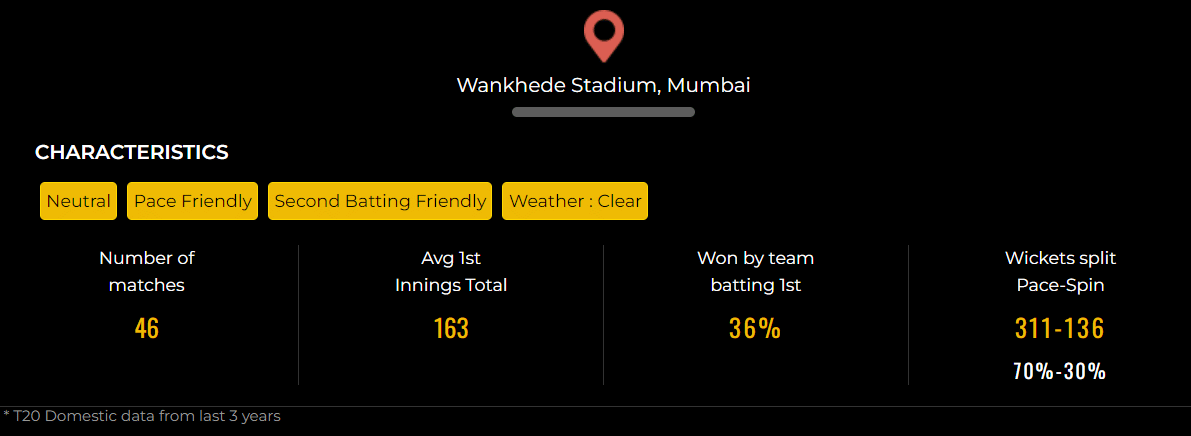 At the venue, pacers have taken 49 wickets (68.1%), with 23 wickets being taken by the spinners. So, pace is the way to go at the venue. With plethora of high-quality pacers in the two sides, expect a good clash between the bat and the ball.