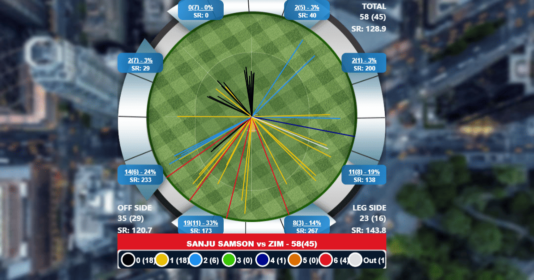 Just when the runs were not coming from the other end either, Samson realised the need to up the ante, and that’s when he picked up the favourable match-up, countering Sikandar Raza with a six down the ground. Even if the contest wasn’t going to have any impact on the outcome of the series, Samson’s six showed how much his game awareness had improved.