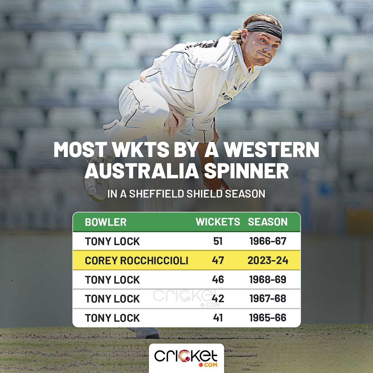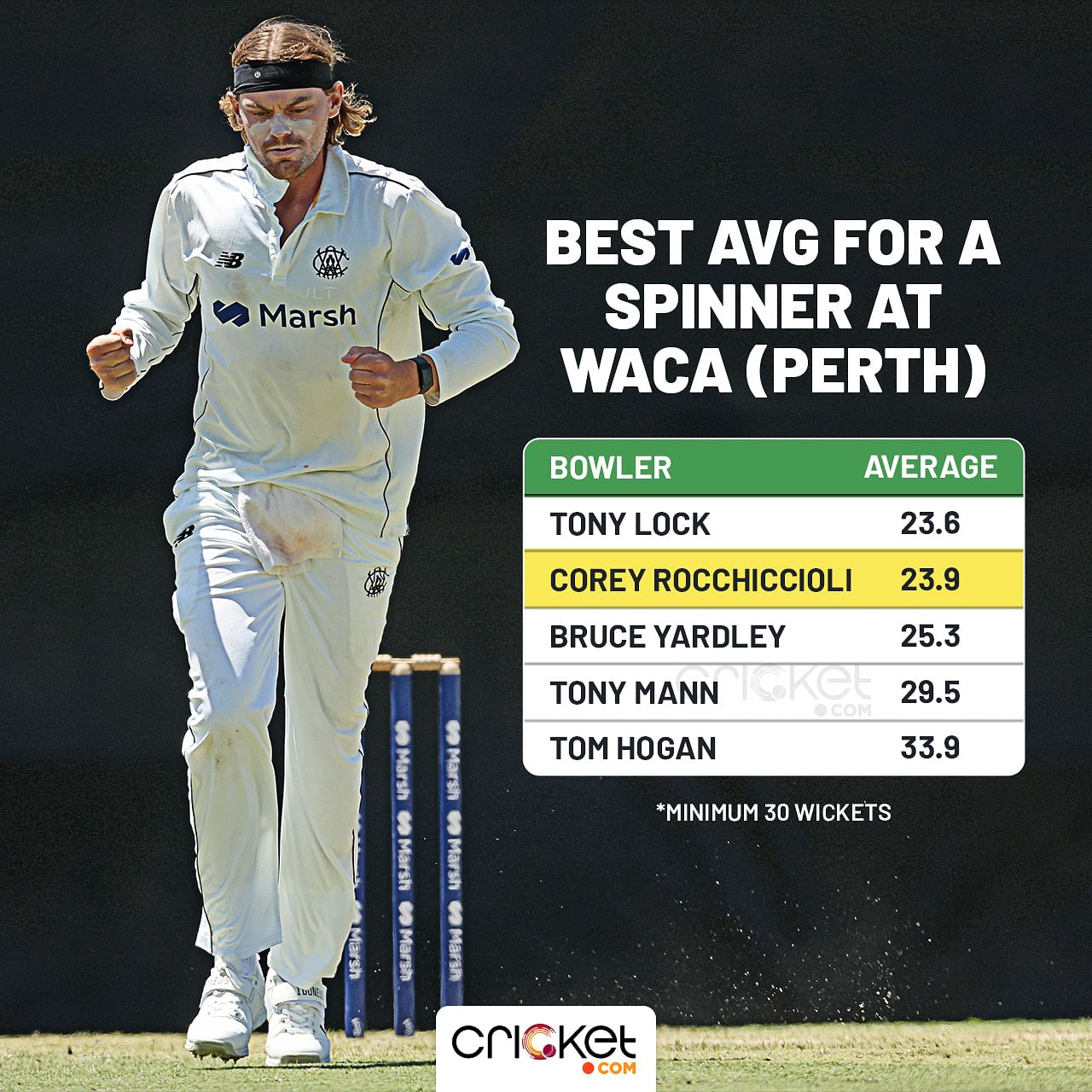 Rocchiccioli’s bowling average at the WACA of 23.9 is the second-best for any spinner at the venue in history, behind Tony Lock (23.6), who played in the 1950s and 1960s.