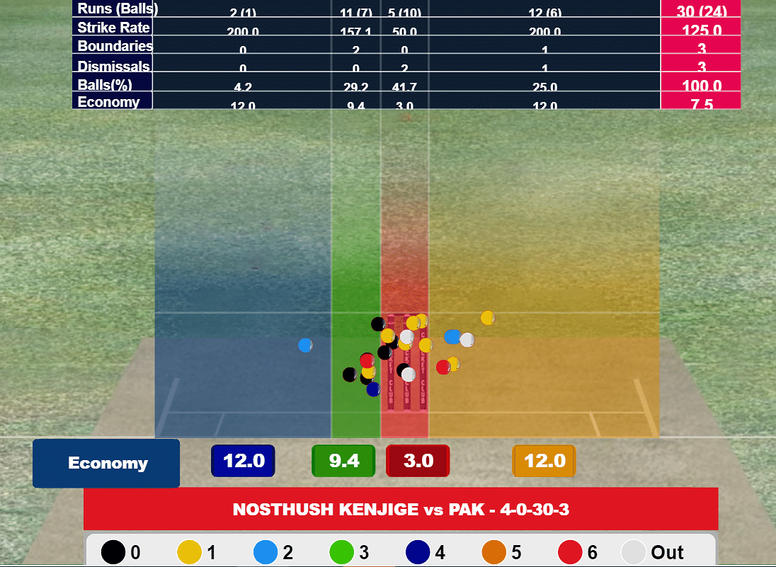 Nosthush Kenjige, bowling in the powerplay, tossed up the third ball of his first over.
