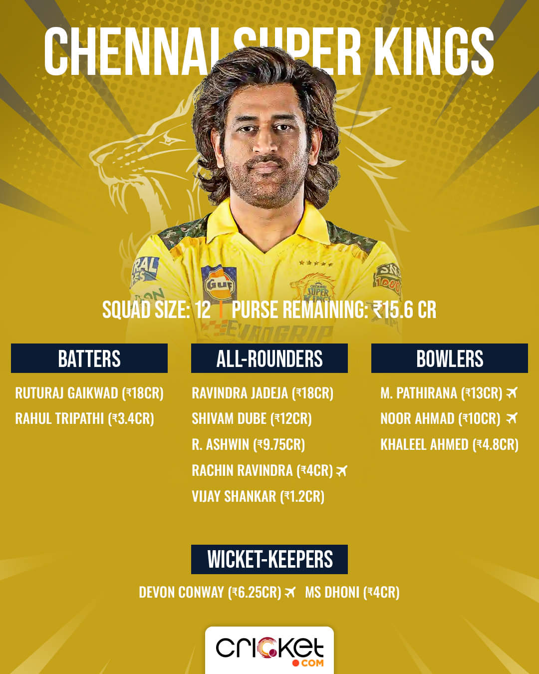 They re-signed their Kiwi pair – Devon Conway and Rachin Ravindra — spending less than 11 crore on the pair.