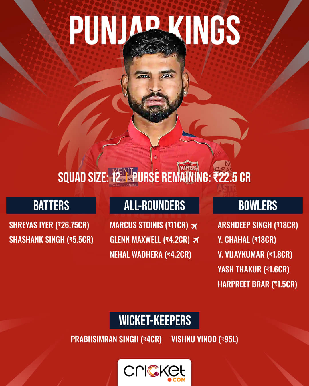 They kicked off the marquee set by using the right-to-match (RTM) card on Arshdeep Singh at 18 crore. While Arshdeep is the kind of bowler every team needs, only Punjab could have afforded to splurge nearly 45 crore on Shreyas Iyer and Yuzvendra Chahal. In Iyer at 26.75 crore, PBKS secured one of the three Indian captaincy options available in the auction.