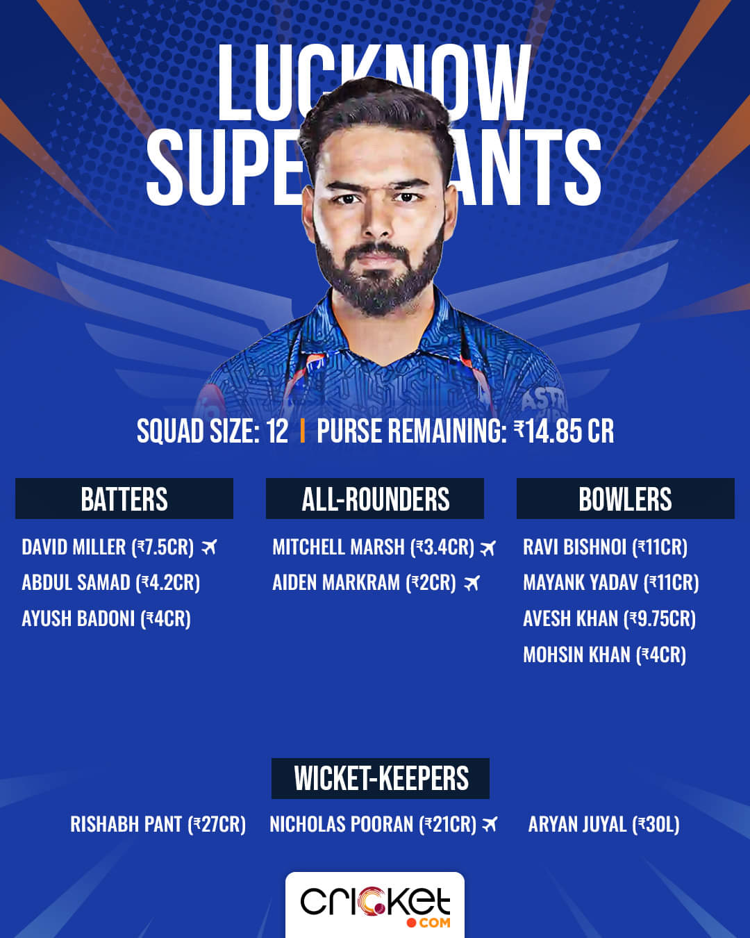 Thus, expect LSG to add a few more batters to their squad and then sign some overseas all-rounders. But in an aftereffect of signing Pant at a record-breaking amount, LSG have only 14.85 crore left.
