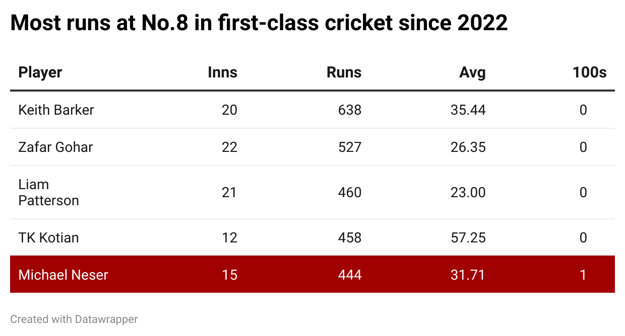 For those unaware, Michael Neser, who made his Test debut for Australia 18 months ago and has been a consistent performer in the Sheffield Shield for half a decade, is currently playing for Glamorgan in the second division of the County Championship.
